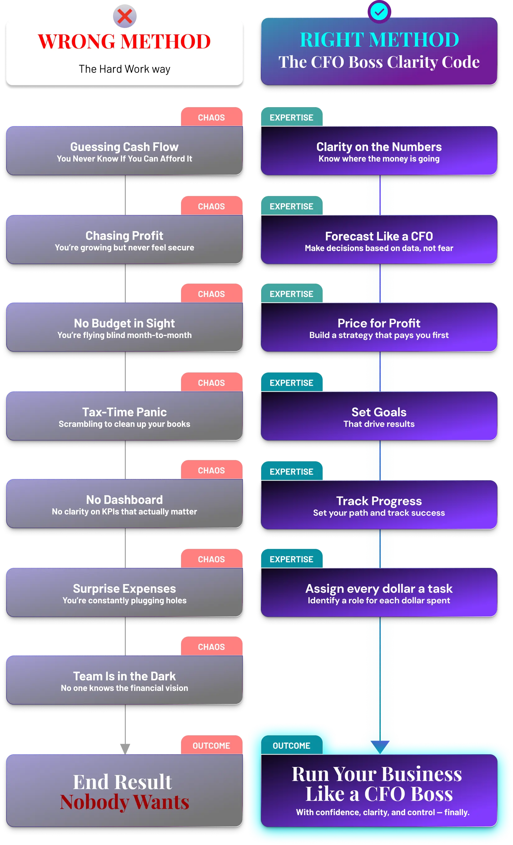 Whereas The C.L.A.R.I.T.Y. Code gives you a system that makes the financial side of growth feel simple, even if numbers aren't your thing.